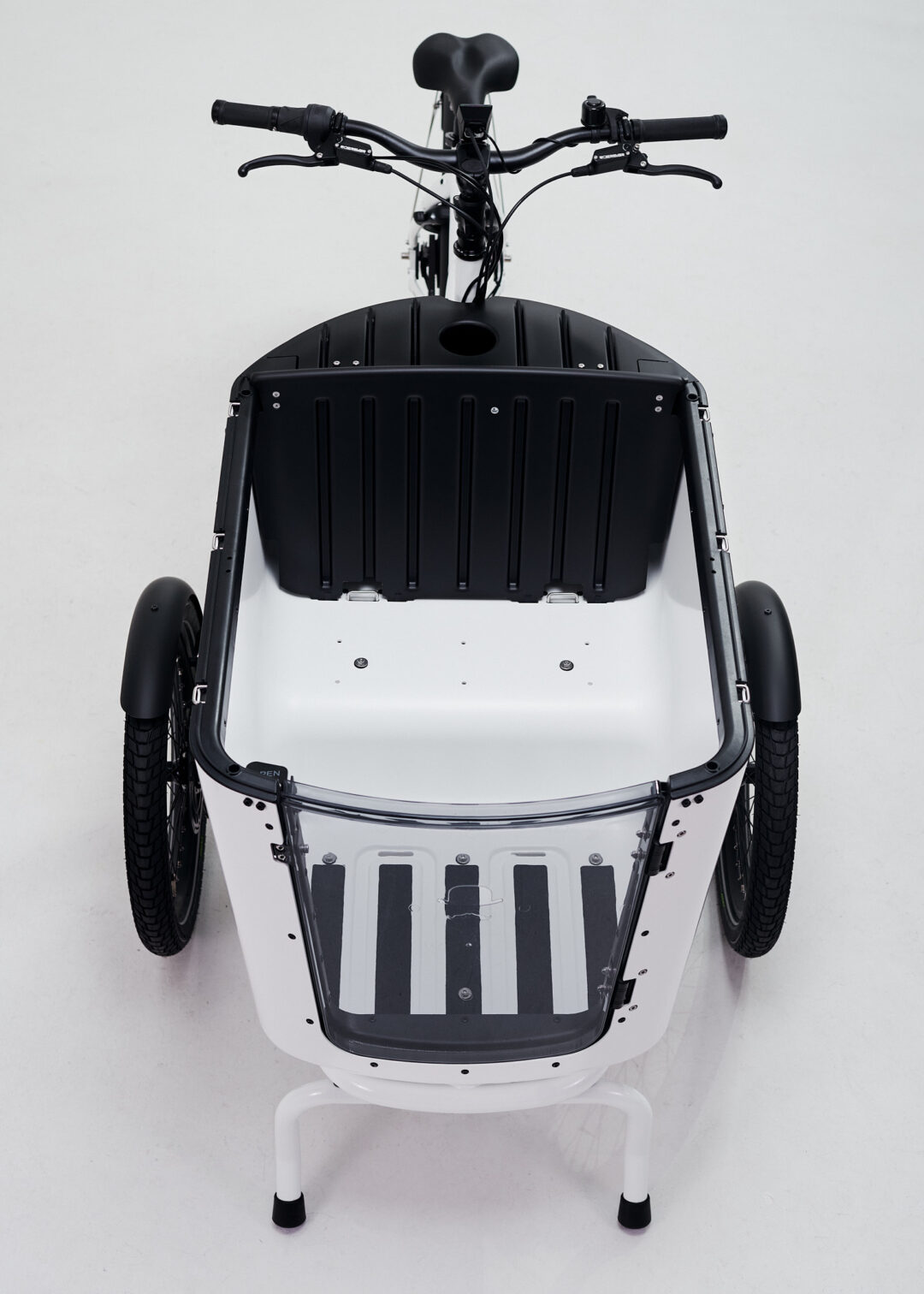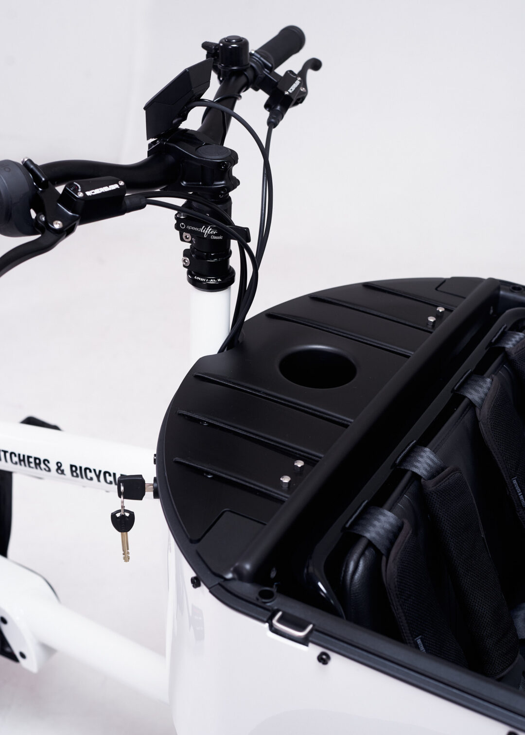 La Butchers and Bicycles MK1-E Gen. 3 è disponibile in elegante bianco lucido o nero opaco, con diverse opzioni per la cassa cargo, inclusa una porta frontale trasparente. Completamente assemblata e pronta all’uso, viene consegnata direttamente a casa tua in 1-2 settimane, pronta per rivoluzionare i tuoi spostamenti urbani.
