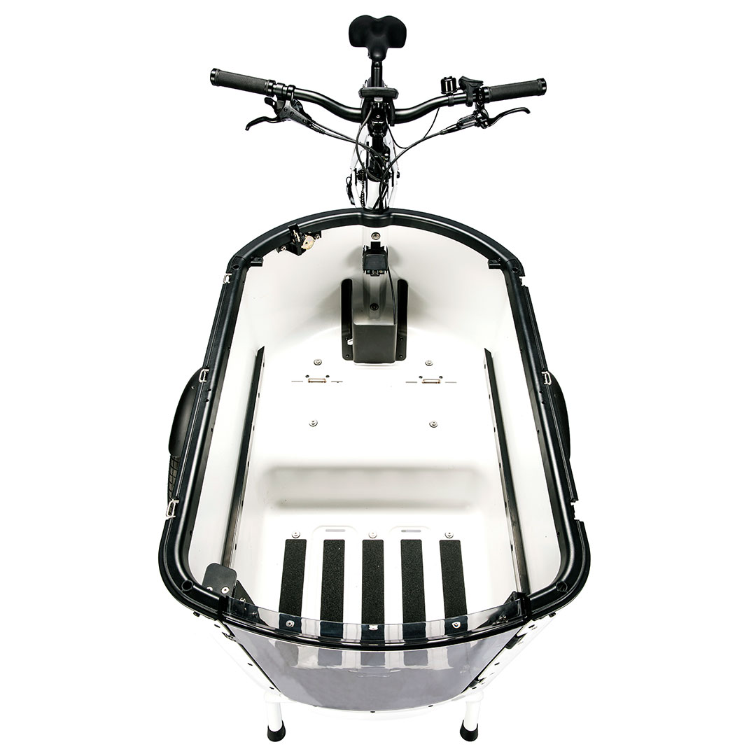 Il design innovativo con tecnologia brevettata BUILT TO TILT™ consente alla bici di inclinarsi naturalmente nelle curve, offrendo una stabilità simile a quella di un’auto e rendendo la guida più sicura e divertente. Il telaio è stato studiato per migliorare il comfort e il controllo, con un tubo superiore accorciato di 8 cm che favorisce una posizione di guida più eretta, adatta a persone di tutte le altezze. Inoltre, le ruote più larghe garantiscono una maggiore stabilità, soprattutto quando si trasportano carichi pesanti.