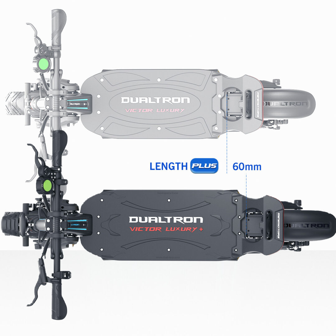 Progettato per offrire il massimo comfort, il Dualtron Victor Luxury Plus dispone di un deck esteso di 60 mm, perfetto per chi cerca più spazio durante la guida. Il sistema di piegatura completo, inclusi i manubri, facilita il trasporto e lo stoccaggio, mentre la doppia porta di ricarica permette una ricarica rapida e parallela, riducendo i tempi di inattività. Questo scooter è la scelta perfetta per chi desidera un mezzo potente, affidabile e versatile per la mobilità urbana.