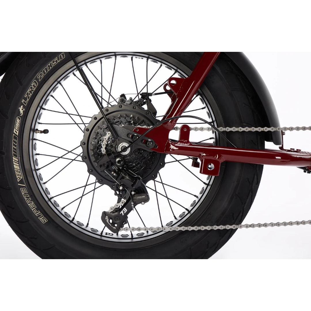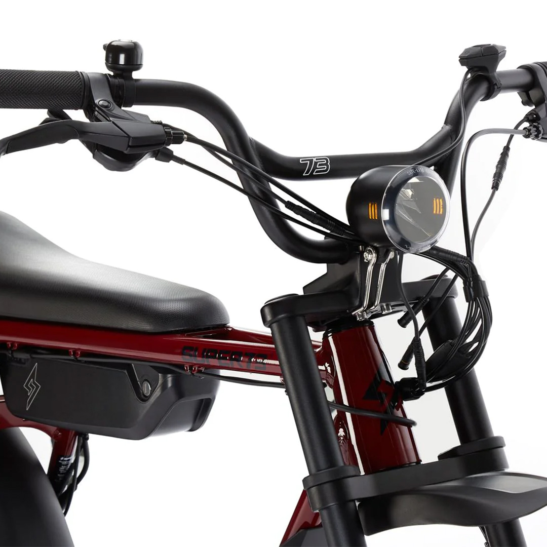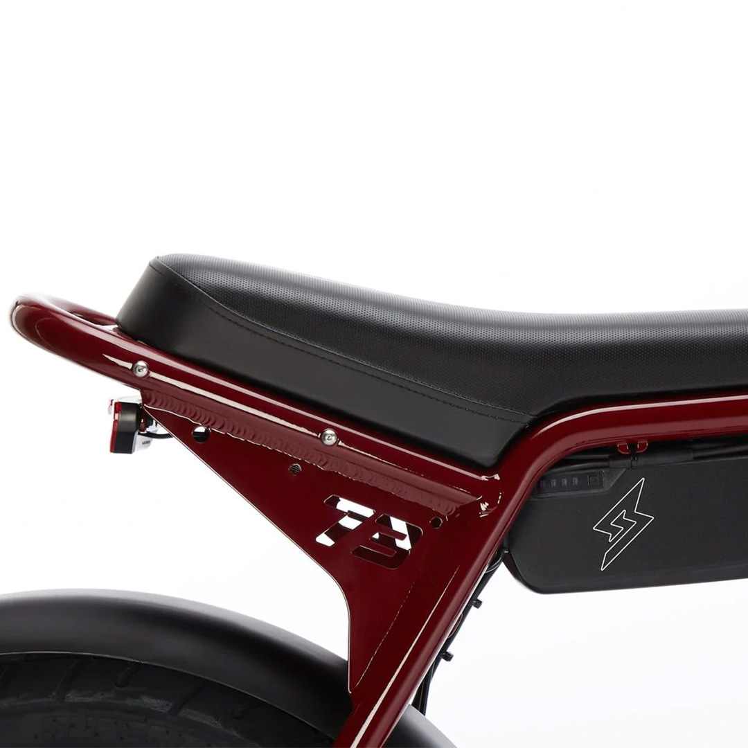 La Super73-ZX Ron Burgundy è ideale per chi cerca un mezzo di trasporto pratico e divertente, senza la necessità di una patente di guida o di un’assicurazione obbligatoria. Il design ergonomico include un sedile comodo e spazioso, con la possibilità di trasportare un passeggero grazie ai poggiapiedi opzionali. Inoltre, la bici è dotata di luci integrate per garantire la sicurezza in ogni condizione di luce, rendendola perfetta per gli spostamenti urbani e le avventure fuori strada.