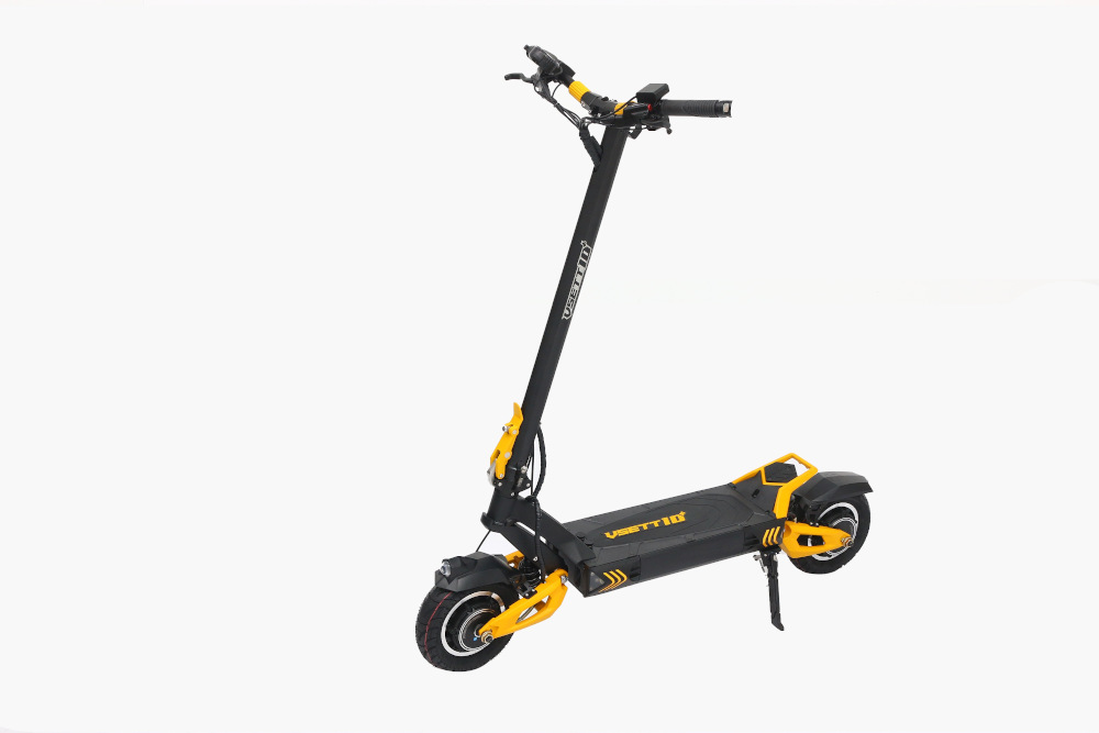 Il Vsett 10+ è uno scooter elettrico potente e versatile, progettato per chi cerca prestazioni elevate e sicurezza su strada. Con una velocità massima di 80 km/h (limitata a 25 km/h per l’uso pubblico), questo modello si distingue per i suoi doppi motori brushless da 1400W ciascuno, che garantiscono un’accelerazione fluida e una guida stabile anche su terreni impegnativi. La sua autonomia varia da 55 a 80 km a seconda della batteria scelta, rendendolo ideale sia per spostamenti urbani che per gite più lunghe.